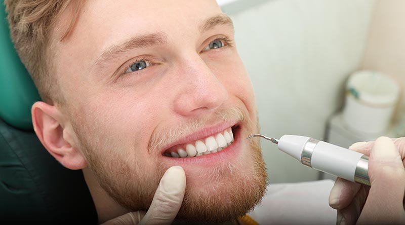 Gehört hat den Begriff vermutlich schon jeder: Bei der Kontrolluntersuchung entfernt der Zahnarzt mit einem Handinstrument Zahnstein an Ihren Zähnen. Dabei handelt es sich um eine harte weißlich-gelbliche Substanz am unteren Rand des Zahnes, die nichts anderes ist als verhärteter bzw. verkalkter Zahnbelag (Plaque). Zahnbelag setzt sich aus Bestandteilen des Speichels, Nahrungsresten und Bakterien zusammen.